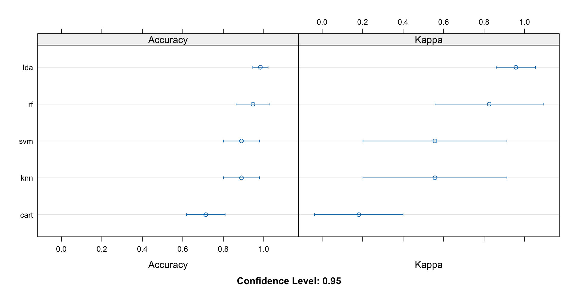I decided to test four different models to see which one was most accurate for my purposes. The dotplot showed that LDA (linear discriminant analysis) would be the best data to help predict W/L.